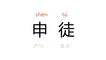 ⒉ 复姓。申,通“司”。殷商时有申徒狄。见《庄子·大宗师》。