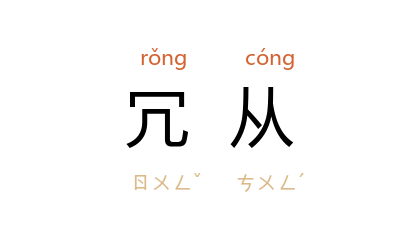⒉ 散职侍从官。《汉书·枚皋传》:“三年,为王使,与冗从争。”颜师古注:“冗从,散职之从王者也。”后汉有中黄门冗从仆射,以宦者任之,秩六百石。居则宿卫,直守门户;出则骑从,夹乘舆车。见《后汉书·百官志三》。后亦泛指随从。