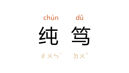 引《后汉书·卷四三·朱晖传》:「是以虚华盛而忠信微,刻薄稠而纯笃稀。」《三国演义·第一〇回》:「太守陶谦,字恭祖,为人温厚纯笃。」