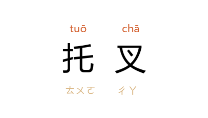 《水浒传》第三七回:“船上有三箇人,一条大汉手裡横着托叉,立在船头上。”