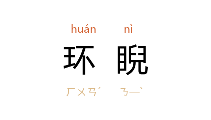 宋 岳珂 《桯史·牸牧相卫》:“民方环睨,虎犹未逸也。”