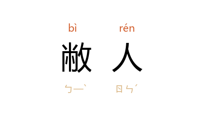 引《后汉书·卷二五·卓茂传》:「汝为敝人矣。凡人所以贵于禽兽者,以有仁爱,知相敬事也。」