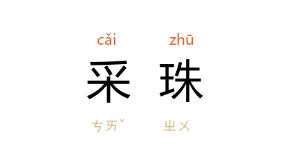 引唐 元稹 《采珠行》:“海波无底珠沉海,採珠之人判死採。”宋 王闢之 《渑水燕谈录·杂录》:“刘鋹 据 岭 南,置兵八千人,专以採珠为事。”明 叶盛 《水东日记·珠池采珠法》:“盖 蜑 丁皆居海艇中採珠,以大舶环池,以石悬大絙,别以小绳繫诸 蜑 腰,没水取珠。”