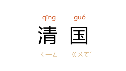 引清 冯桂芬 《制洋器议》:“我 大清国 北自 兴安岭,南自 厓州,距四十三度,计万七百餘里。”鲁迅 《朝花夕拾·藤野先生》:“上野 的樱花烂熳的时节,望去确也像绯红的轻云,但花下也缺不了成群结队的‘ 清国 留学生’的‘速成班’。”