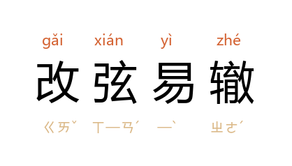 ⒈ 亦作“改絃易辙”。改换弦线,变更行车线路。比喻改变方向、做法或态度。参见“改弦更张”。