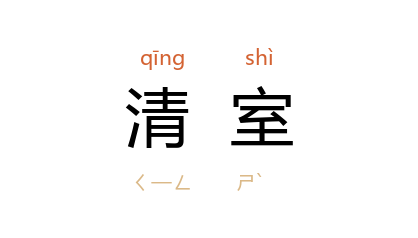 ⒈ 清凉的屋室。请罪的住所,狱室。清查宫室,警戒安全。斋戒的屋舍。指清廷。