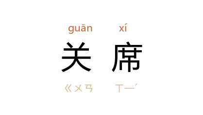 ⒈ 坐主位。设酒宴待客,主人最后落座,故称关席。
