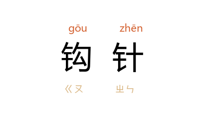 ⒈ 一种钩织物品的工具。有不锈钢和竹制等多种。