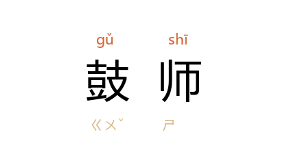 ⒈ 戏曲演出的乐队中击鼓的人。