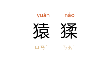 引《管子·形势》:“坠岸三仞,人之所大难也,而猿猱饮焉。”晋 葛洪 《抱朴子·明本》:“侣狐貉於草泽之中,偶猿猱於林麓之间。”唐 李白 《蜀道难》诗:“黄鹤之飞尚不得过,猿猱欲度愁攀援。”清 黄遵宪 《台湾行》:“前者上岸雄虎彪,后者夺关飞猿猱。”