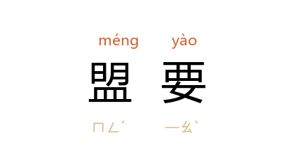 引《后汉书·南蛮传·板楯蛮夷》:“﹝ 秦昭襄王 ﹞以其夷人不欲加封,乃刻石盟要。”《三国志·吴志·吴主传》“此言之诚,有如 大江” 裴松之 注引 三国 魏 鱼豢 《魏略》:“及 魏文帝 即王位, 权 乃遣 周,为牋 魏王 曰:‘……先王盟要,由来已久。且 权 自度未获罪衅,不审今者何以发起,牵军远次?’”