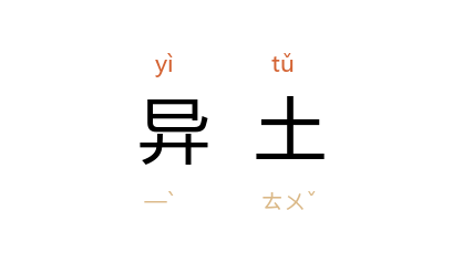 引《墨子·尚同上》:“远国异土之民,是非利害之辩。”《晋书·卫瓘传》:“一拟古制,以土断定,自公卿以下,皆以所居为正,无復悬客远属异土者。”宋 梅尧臣 《舟次朱家曲寄许下故人》诗:“稍听隣船语,初分异土言。”