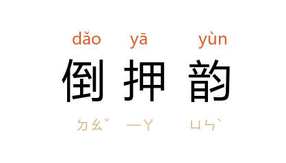 ⒈ 作旧体诗词时为了押韵的需要而将组成复音词的两个字颠倒使用,称为倒押韵。如唐韩愈《答张彻诗》“碧流滴珑玲”、《孟生诗》“应对多差参”,即因押韵而倒用“玲珑”为“珑玲”、“参差”为“差参”。