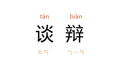 引《墨子·耕柱》:“能谈辩者谈辩,能説书者説书,能从事者从事,然后义事成也。”《新五代史·唐臣传·任圜》:“﹝ 任圜 ﹞为人明敏,善谈辩。”宋 王闢之 《渑水燕谈录·名臣》:“王沂公 奉使 契丹,馆伴 耶律祥 颇肆谈辨,深自衒鬻。”明 叶式 《题<诚意伯刘公集>》:“少传性理,长号英特,荐更世故,谈辩至悉。”