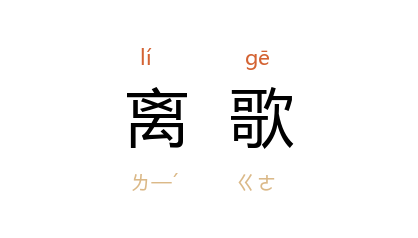 引南朝 梁 何逊 《答丘长史诗》:“宴年时未几,离歌倐成赋。”唐 骆宾王 《送王赞府上京参选赋得鹤》:“离歌凄妙曲,别操绕繁絃。”宋 周邦彦 《点绛唇》词:“征骑初停,酒行莫放离歌举。”明 刘基 《送医士贾思诚还浙东》诗之一:“西风嫋嫋水鳞鳞,一曲离歌泪满巾。”
