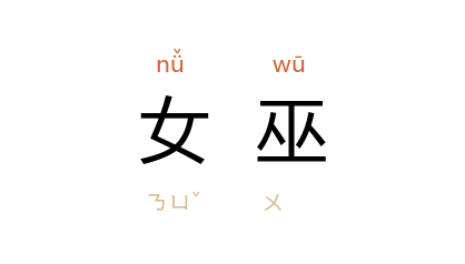 ⒉ 以通鬼神,为人祈福消灾、占卜等为职业的女子。