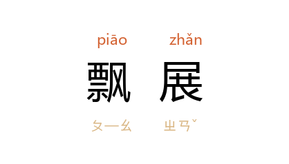 引曹禺 《难忘的印度》:“微风吹动了他们渐渐小了的飘展的头巾和‘纱丽’。”苗得雨 《山崮赞》:“红石崮,似血染,如一片红旗在飘展。”