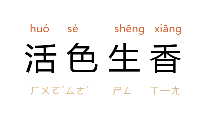 例如:「他的作品活色生香,精彩绝伦。」