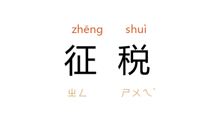 ⒈ 征收税捐、收取税赋。