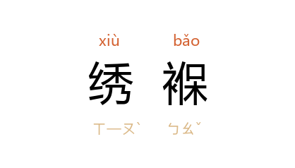 引清 唐孙华 《己卯元旦》诗之二:“咿哑绣褓雏孙长,寂歷衡门贺客稀。”清 唐孙华 《英孙》诗:“公然绣葆出堂前,坐客齐声加激赞。”清 姚燮 《谁家七岁》诗:“咄哉朱门儿,绣褓金辉煌。”