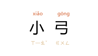 ⒈  长度单位。与大弓之比为四比五。指弓形的小型弹棉花工具。射箭所用之弓的较小或较软者。