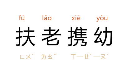 ⒈ 搀扶著老人,带领著小孩。形容民众成群结队而行。也作「携老扶弱」、「携老扶幼」、「携老挈幼」、「携幼扶老」。
