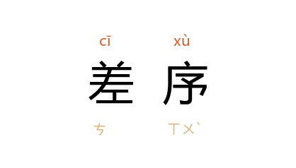 引《三国志·魏志·东夷传》:“及宗族尊卑,各有差序,足相臣服。”南朝 梁 刘勰 《文心雕龙·书记》:“若夫尊贵差序,则肃以节文。”