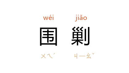 例如:「政府派出大批军队包围整个山区,围剿悍匪。」
