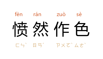 ⒈ 愤然:忿怒的样子。因忿怒而变了脸色,发怒。