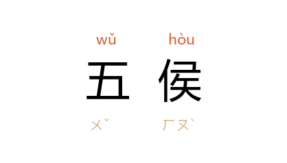 ⒈  公、侯、伯、子、男五等诸侯。参见“五侯九伯”。指同时封侯的五人。泛指权贵豪门。指同时封侯的五人。指同时封侯的五人。