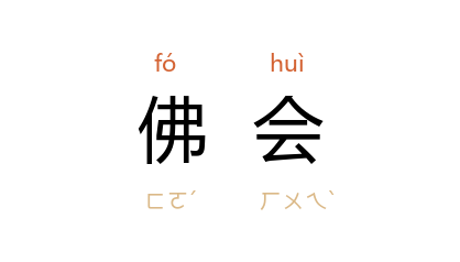 例如:「他常常参加佛会。」