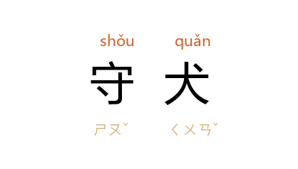引《礼记·少仪》:“犬则执緤,守犬、田犬则授摈者,既受,乃问犬名。”孔颖达 疏:“犬有三种:一曰守犬,守御宅舍者也;二曰田犬,田猎所用也;三曰食犬,充君子庖厨庶羞用也。”《穆天子传》卷三:“野马、野牛四十,守犬七十。”唐 陆龟蒙 《江墅言怀》诗:“树少栖禽杂,村孤守犬重。”