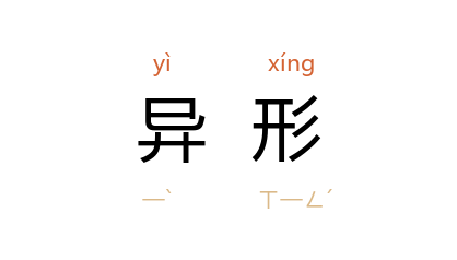 ⒉ 外太空的怪物。由美国福斯电影公司于八〇年代出品的一系列中文译名为「异形」的卖座外太空科幻电影而得名。
