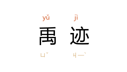⒉ 相传 夏禹 治水,足迹遍于九州,后因称 中国 的疆城为 禹 迹。
