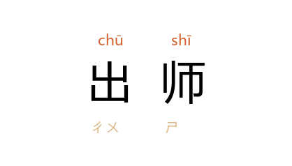 ⒉ 学徒从师学艺,期满艺成称为「出师」。也作「出道」。