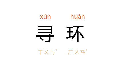 引三国 魏 嵇康 《声无哀乐论》:“今復烦寻环之难,敢不自一竭邪?”一本作“循环”。 唐 李商隐 《戏赠张书记》诗:“心知两愁絶,不断若寻环。”宋 姚宽 《西溪丛语》卷下:“长夜不能眠,伏枕独展转。忧来如寻环,匪席不可卷。”