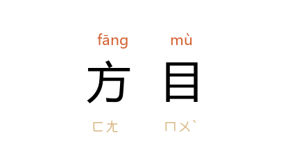 后多以“方目”形容眼睛呈方形,大而有神,为神仙或同类中翘楚者之特征。 汉 王粲 《游海赋》:“鱼则横尾曲头,方目偃额,大者若山陵,小者重钧石。”