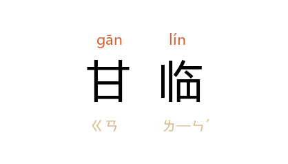 引《易·临》:“甘临,无攸利。”宋祚胤 考辨:“‘甘临’,是以临为甘,即认为 周厉王 的治理很不错。”唐 高适 《淇上别刘少府子英》诗:“求仁见交态,於道喜甘临。”