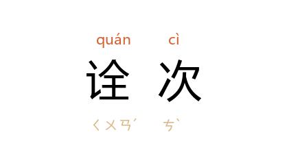 ⒈ 次第;层次。诠,通“铨”。