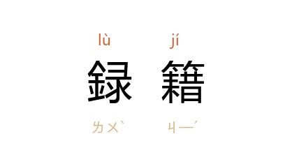 ⒈ 记载官俸等级的簿册。録,通“禄”。 晋 干宝 《搜神记》卷十:“司命按録籍云:‘此人相贫,限不过此。惟有 张车子,应赐钱千万。