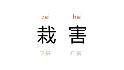 引《西游记》第九七回:“行者 叫道:‘那打誑语栽害平人的妈妈子,且莫哭!’”清 林则徐 《晓谕粤省士商军民人等速戒鸦片告示稿》:“向来文武衙门弁兵差役,破获原为不少,而民间惮於查禁,遂以栽害攫物,徇纵诈赃等弊,纷纷藉口,此固不能保其必无。”