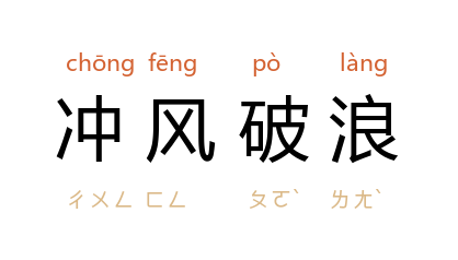 引郑观应 《盛世危言·海防上》:“昔日之艟艨楼船,不敌今日之铁甲飞轮衝风破浪也。”亦省作“衝浪”。 明 陈汝元 《金莲记·偕计》:“况因 麟 紱 两儿观光上国,故此鷁舟千里,衝浪长江。”