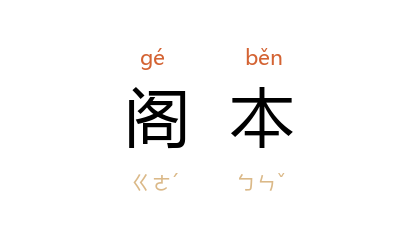 引宋 苏轼 《跋希白书》:“希白 作字,自有 江 左风味,故 长沙 法帖,比 淳化 待詔所摹为胜,世俗不察,争访阁本,误矣。”明 张居正 《答中翰张后湖书》:“先年 张文简 公曾得内阁所藏《册府元龟》一部,其后 文简公 卒於京邸,其僕即将此书於部前货卖。令先翁识其为阁本也,赎而藏之於家。”