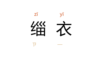 ⒊ 《诗经·郑风》的篇名。共三章。根据诗序:「缁衣,美武公也。」首章二句为:「缁衣之宜兮,敝,予又改为兮。」缁,黑色。缁衣,卿士居私朝之服也。