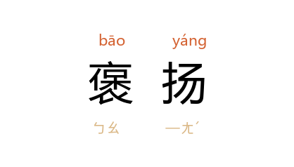 引《书经·洛诰》「以予小子扬文武烈」句下汉·孔安国·传:「言公当留举大明德,用我小子褒扬文武之业而奉顺天。」《后汉书·卷一四·宗室四王三侯传·齐武王縯传》:「肃宗下诏褒扬之,复封张子它人奉其祠。」