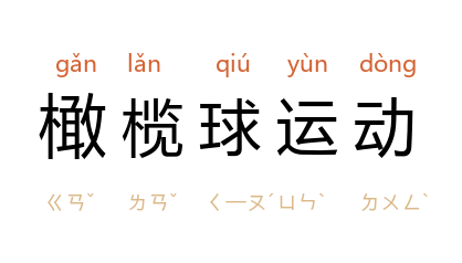 ⒈ 由足球运动派生的一项球类运动。球用皮革制,内装橡皮胆。可用脚踢球,用手传球,也可抱着球奔跑。可以拉人拖腿。源于英国拉格比,原名拉格比足球。因球形似橄榄,中国称为“橄榄球”。流行于英国、美国、加拿大、澳大利亚、新西兰等国。可分为英式(又称软式)橄榄球和美式(又称硬式)橄榄球两大类。