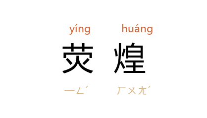 引唐·李白〈明堂赋〉:「崇牙树羽,荧煌葳蕤。」《西游记·第四四回》:「只听得那里吹打,悄悄的爬起来,穿了衣服,跳在空中观看,原来是正南上灯烛荧煌。」