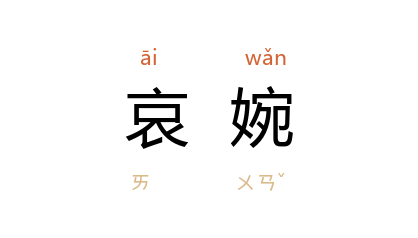 引明 沉德符 《野获编·宫闱·今上笃厚中宫》:“时工科都给事中 王德完,新自家居补官至都,始露章力諫,其辞哀婉而危切。”清 吴伟业 《梅村诗话》六:“二诗於乙酉五月事极切,哀婉凄节,使人不忍读。”夏衍 《改编<复活>后记》:“我不想把它写成一个哀婉的‘恋爱故事’。”