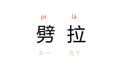 引《醒世姻缘传》第六七回:“你劈拉着腿去坐崖头挣不的钱吗?”《醒世姻缘传》第七八回:“追论前事,二罪并举,三十个板子,把腿打的劈拉着待了好几日。”