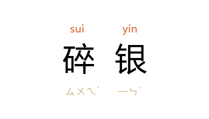 ⒈ 散碎的银子,份量多少不一。与成绽的份量为整数的银子相对。